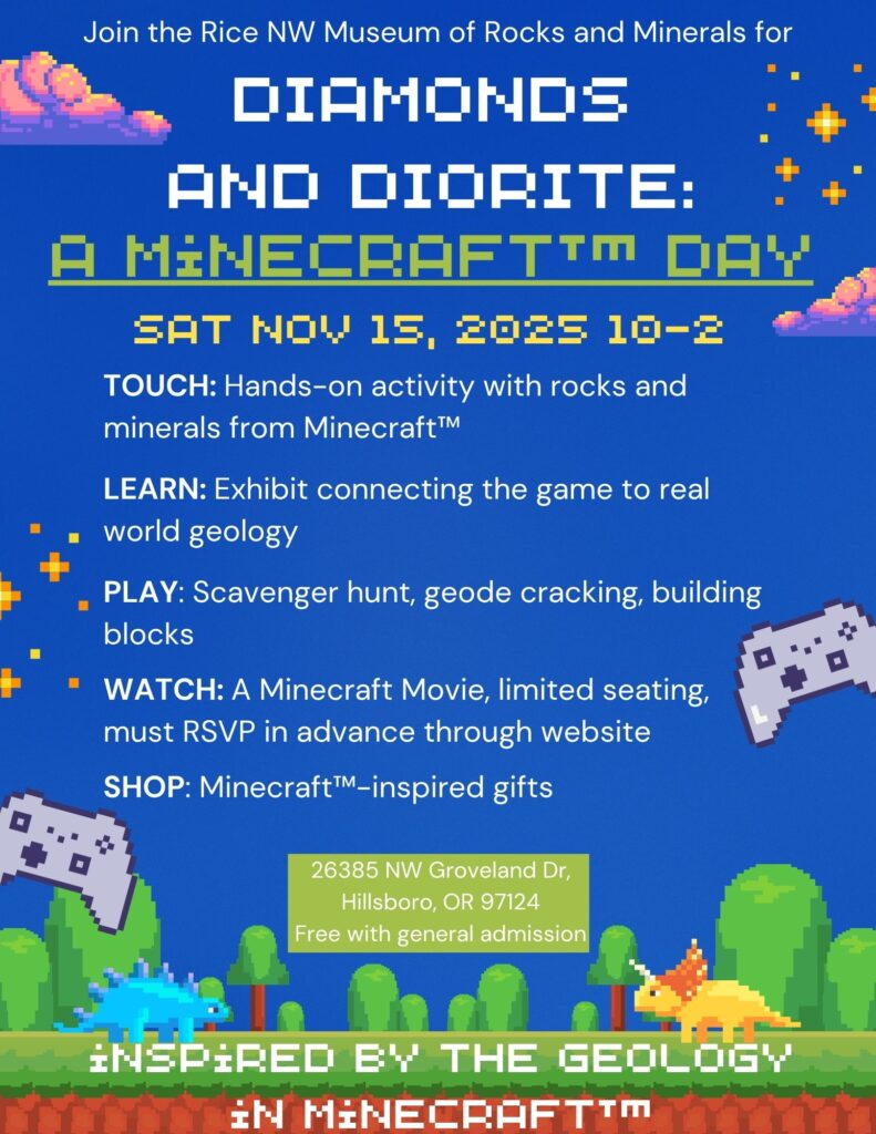 Step into the world of Minecraft™—and beyond! At this interactive event, kids and families can experience geology in real life through hands-on fun with rocks and minerals straight from the game’s universe.
