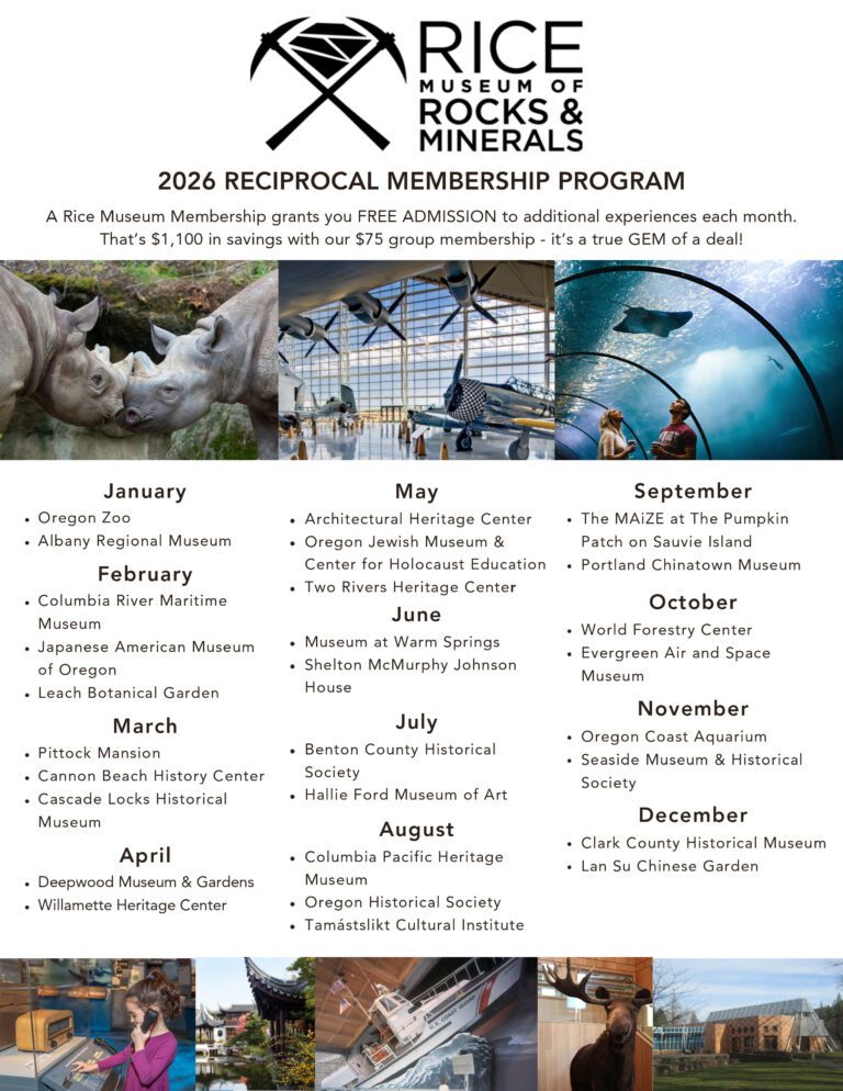 Rock clubs are our allies in sharing our mission to engage, inspire, and educate. For $500 a year, rock clubs receive unlimited admission to the Rice Northwest Museum for all club members,10% off regular priced gift shop purchases for all members, special pricing on hosting events at the museum, and participation in our rotating club display cases.
