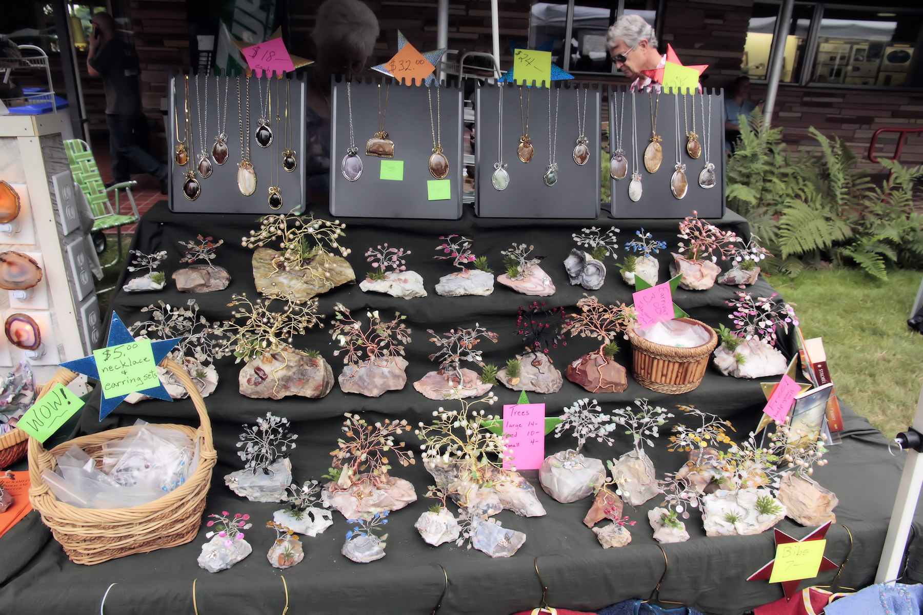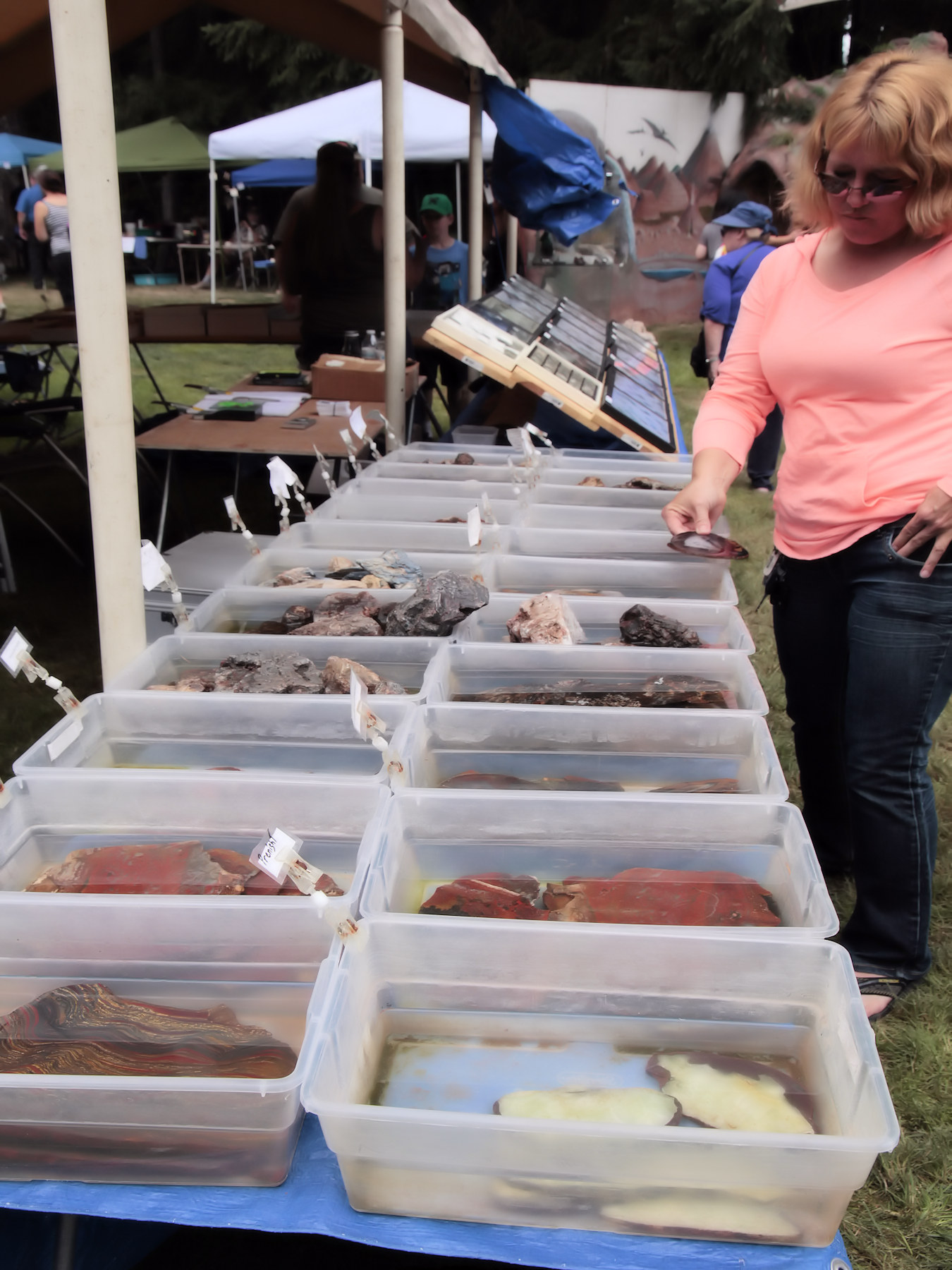 Rock clubs and groups from around the Pacific Northwest were there to provide educational fun as well with geode cracking and gold panning among the many highlights. Vendors from around the country offered a wide range of rocks, minerals, and gems for every type of interest for collector or jewelry lover. The children’s area brought glue, paper, ribbons, and beads together with rocks for some creative artwork.