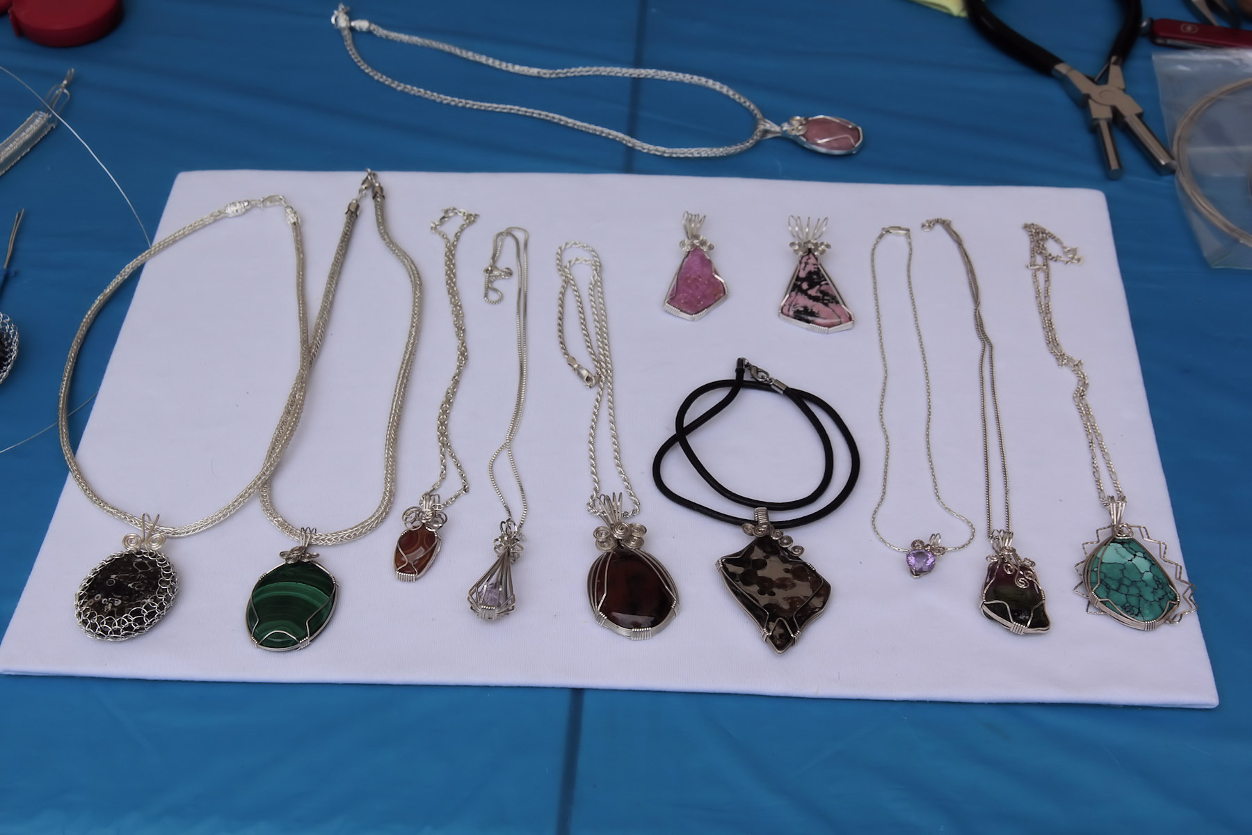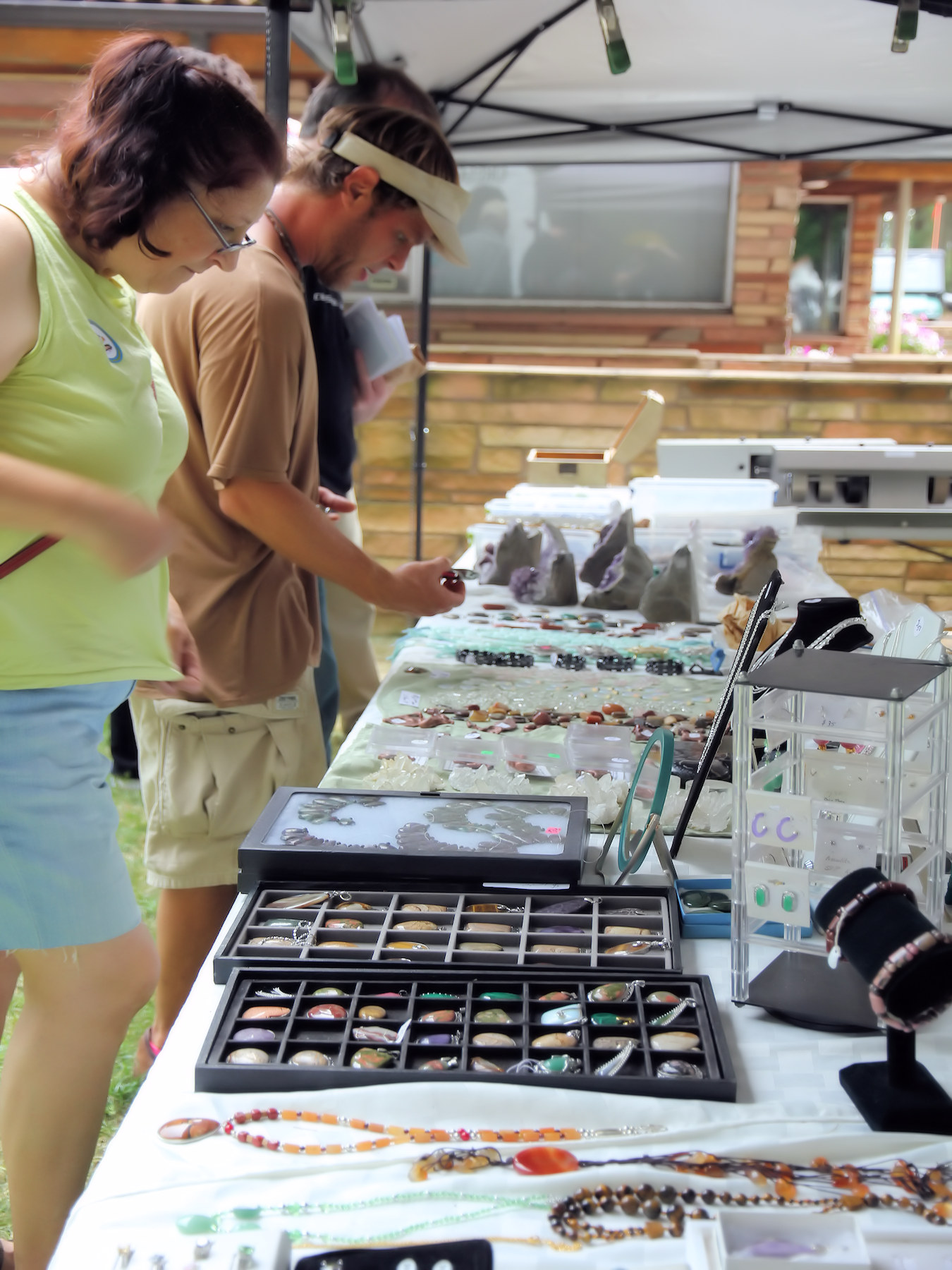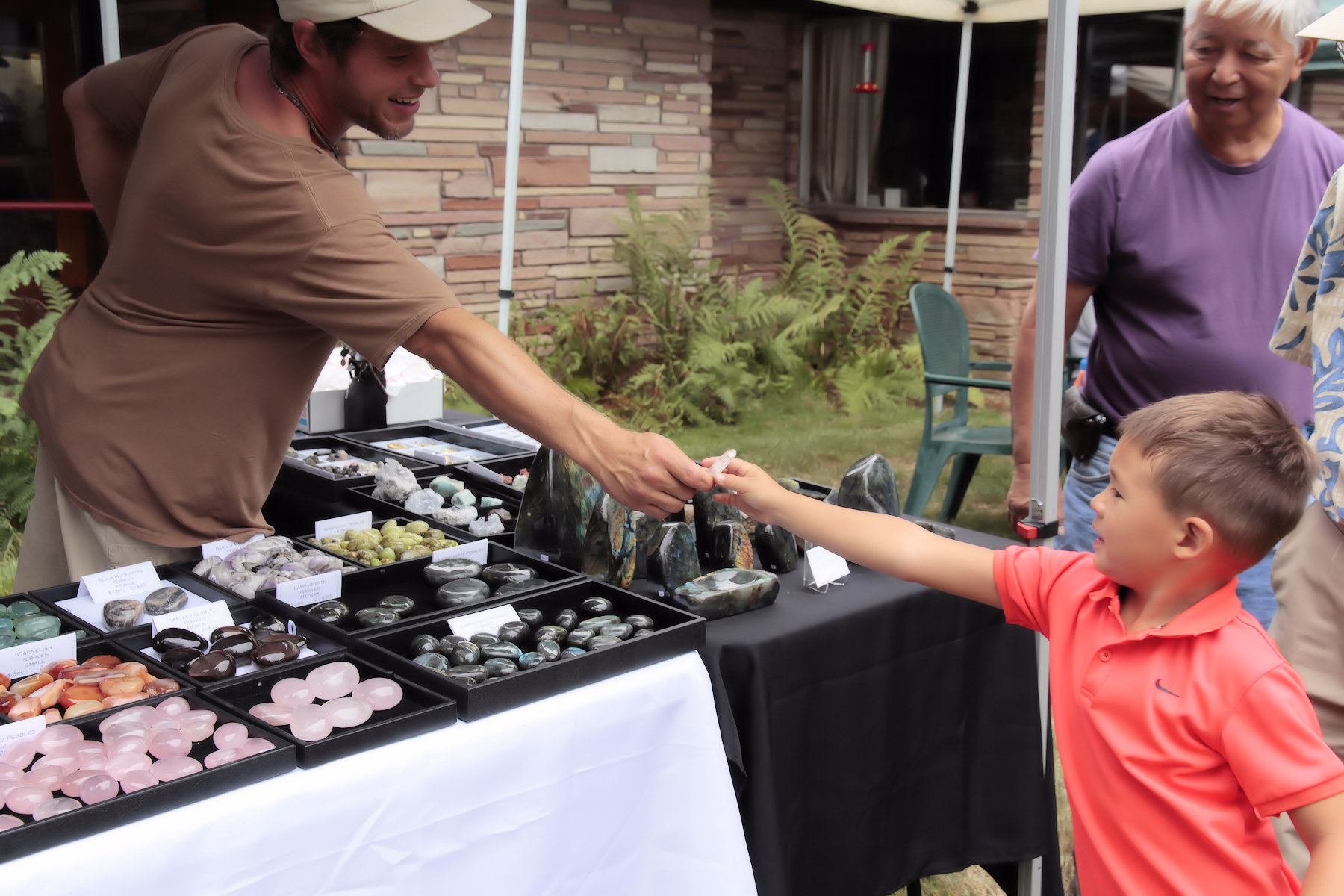 Curator Leslie Moclock and volunteer Barb Epstien kept the silent auction going through the busy weekend, with many auction winnings bringing treasures back with children and adults. Many people went home with more rock and jewelry prizes in the hourly drawings.