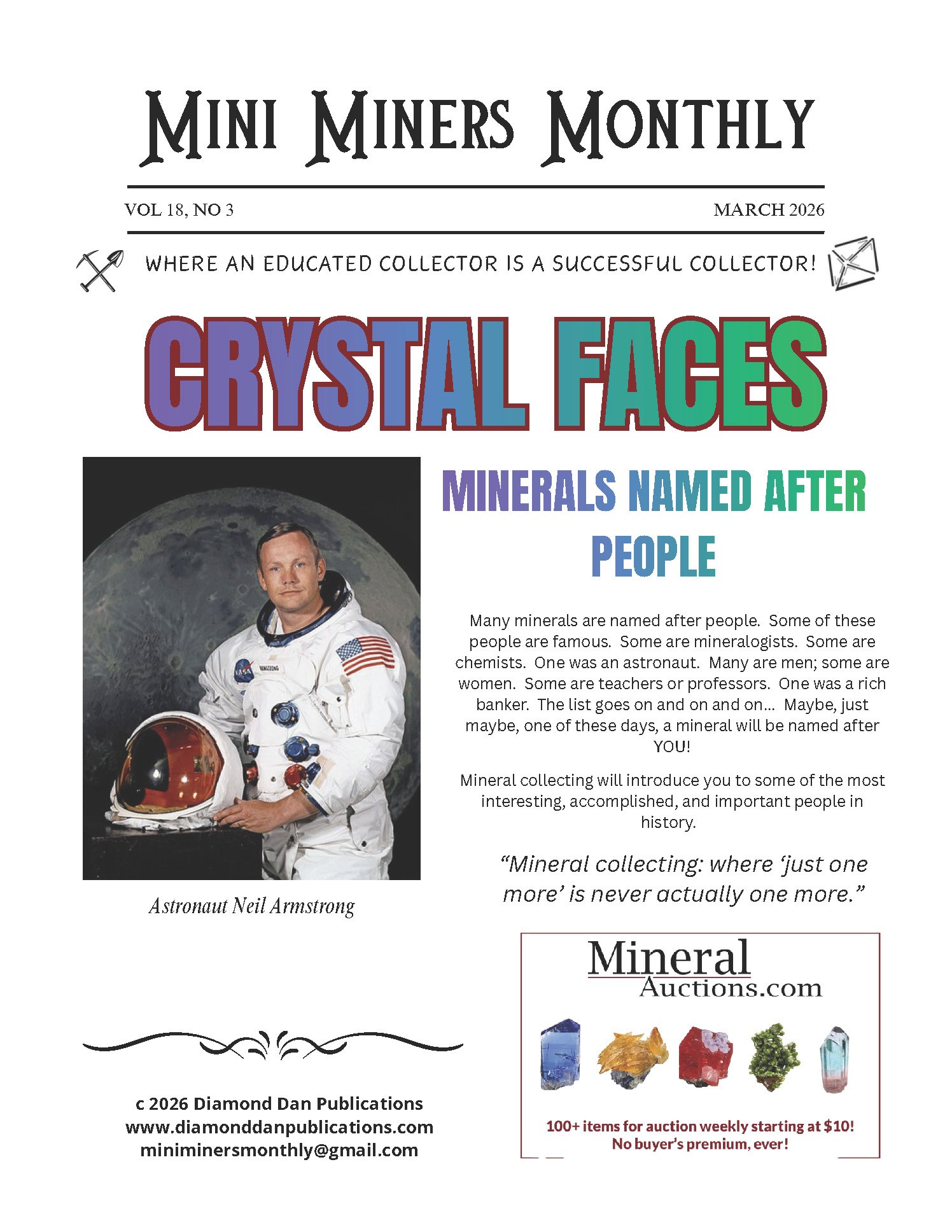 Learn about minerals named after people in the March edition of Mini Miners Monthly.